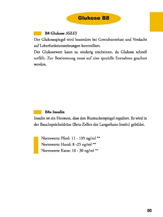 - Die Einteilung ist angelehnt an die bekannten Tafeln Blutwerte für Tiere und erleichtert so die Orientierung