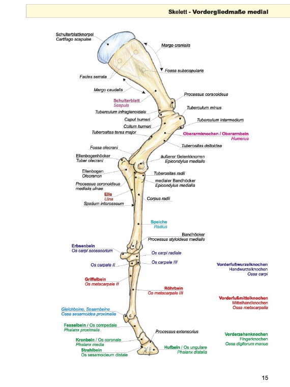 Knochen, Gelenke, sowie die Hilfseinrichtungen der Muskulatur/Gelenke werden anschaulich dargestellt und erläutert.