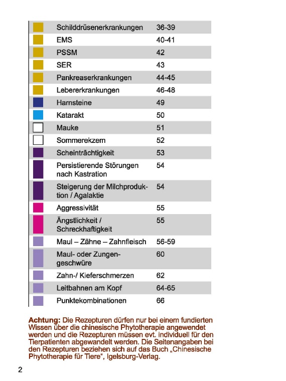 - Über 50 Erkrankungen & Symptome aus der westlichen Veterinärmedizin